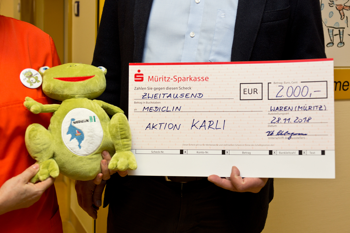 Wir haben wirklich tolle Unternehmer in der Müritz-Region: Vor wenigen Tagen berichteten wir bereits über das VW-Autohaus Kühne, das in diesem Jahr auf Kalender, Weihnachtskarten und kleine Aufmerksamkeiten verzichtet und das Geld dafür an verschiedene Schulen gegeben hat, heute können wir eine weitere Klasse-Aktion vorstellen: Die Mitarbeiter des Warener Opel-Autohauses Schlingmann, bekannt nicht nur als zuverlässiger Händler, sondern auch Veranstalter, entschieden sich in diesem Jahr ebenfalls gegen Kalender und Präsente. Dafür spendete das Unternehmen 2000 Euro für „Karli“ – den Trostspender der Kinder- und Jugendstation im Müritz-Klinikum.