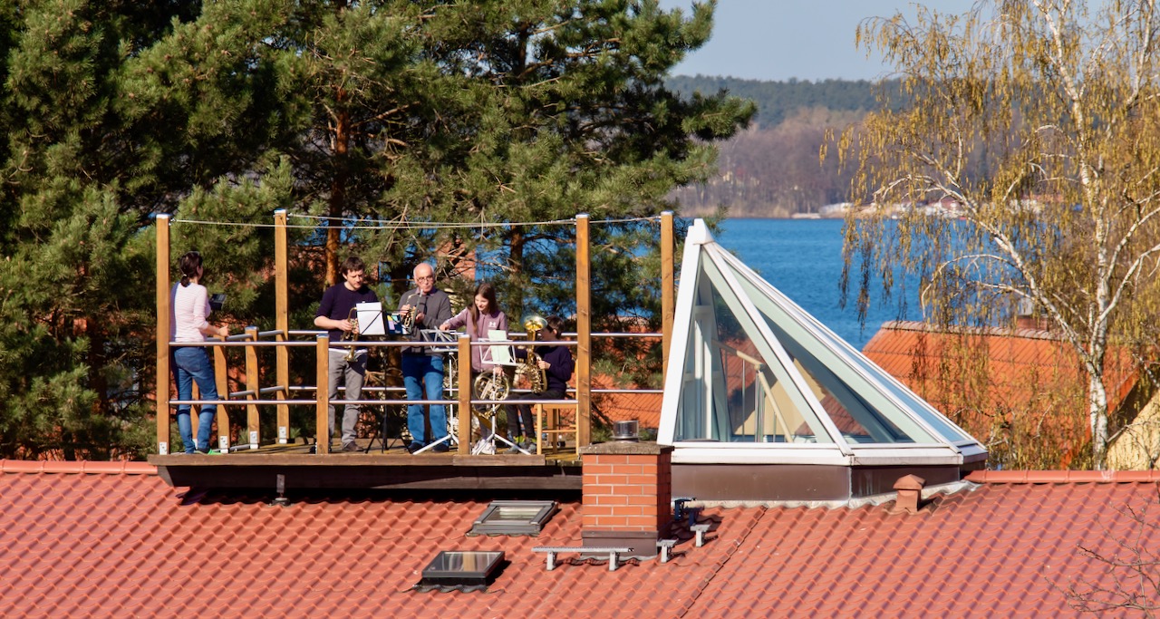 Vom Dach aus verbreiten diese Musiker festliche Stimmung.