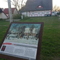 Mitten im Künstlerort liegt der Grenzweg am Strandübergang 14. Hier trennte einst ein Fliessgewässer Mecklenburg im Süden von Pommern im Norden. Über den Fluss sollen auch Schiffe aus dem Bodden heraus in die Ostsee geschippert sein, die auf uralten Karten noch „die wilde See“ heißt. Inzwischen ist der riesige Saaler Bodden eingedeicht, ein Teil des Feuchtgebietes musste den „Grenzweg“ weichen, in dem groessere Häuser ihren Platz gefunden haben, darunter einer der ältesten Fischereibetriebe der Region.