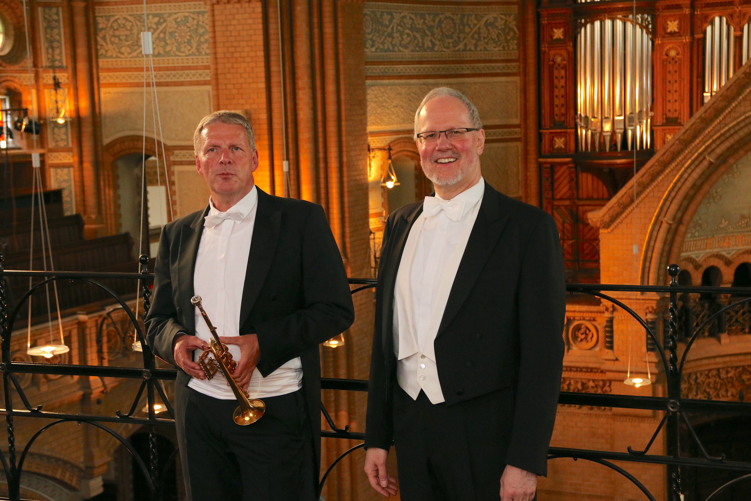 Uwe Komischke arbeitete als 1. Solotrompeter der Münchner Philharmoniker und hat seit 1994 einen Ruf als Professor für Trompete an der Hochschule in Weimar. Thorsten Pech gehört zu den renommierten Konzertorganisten unseres Landes und ist gleichzeitig als Dirigent im Konzert- und Oratorienbereich tätig. Von 1989- 2021 dirigierte er Chor und Orchester des Bachvereins Düsseldorf, seit 2003 arbeitet er als Musikdirektor beim Konzertchor Wuppertal.