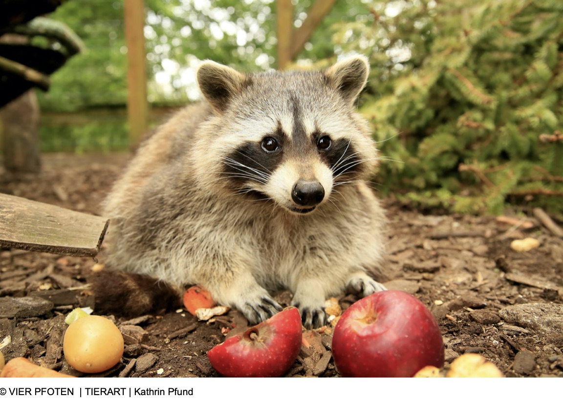 Waschbären sind Allesfresser. Sie lieben Obst, Gemüse und Insekten ebenso wie Essensreste oder Hundefutter. Komposthaufen und Mülltonnen stellen für die nordamerikanischen Kleinbären also schmackhafte Verlockungen dar. Da die Tiere allerdings nachtaktiv sind, geht die Futtersuche oft mit unerwünschtem Radau einher. Dazu ärgern sich Anwohner über kaputte Blumentöpfe, zerrissene Müllsäcke und geplünderte Abfalleimer. „Waschbären sind sehr schlau und bequem“, sagt VIER PFOTEN Experte Florian Eiserlo.