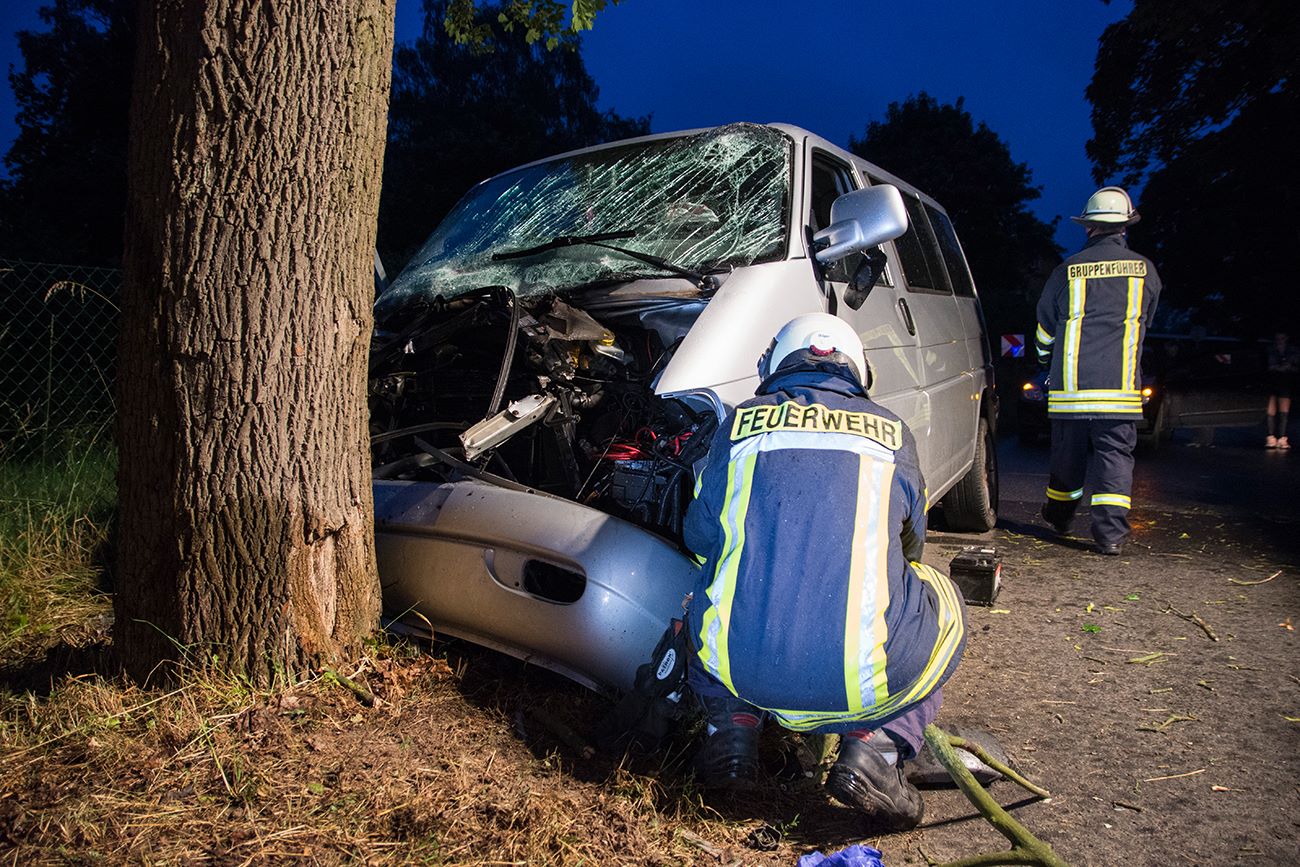Folgenschwerer Verkehrsunfall in der Nacht zum Samstag auf der Landstraße 20 in Penzlin. Nach bisherigem Stand der polizeilichen Ermittlungen kam ein 37-jähriger PKW-Fahrer aus bisher ungeklärter Ursache in einer Linkskurve nach rechts von der Fahrbahn ab, überfuhr ein Verkehrsschild und prallte frontal gegen einen Straßenbaum.