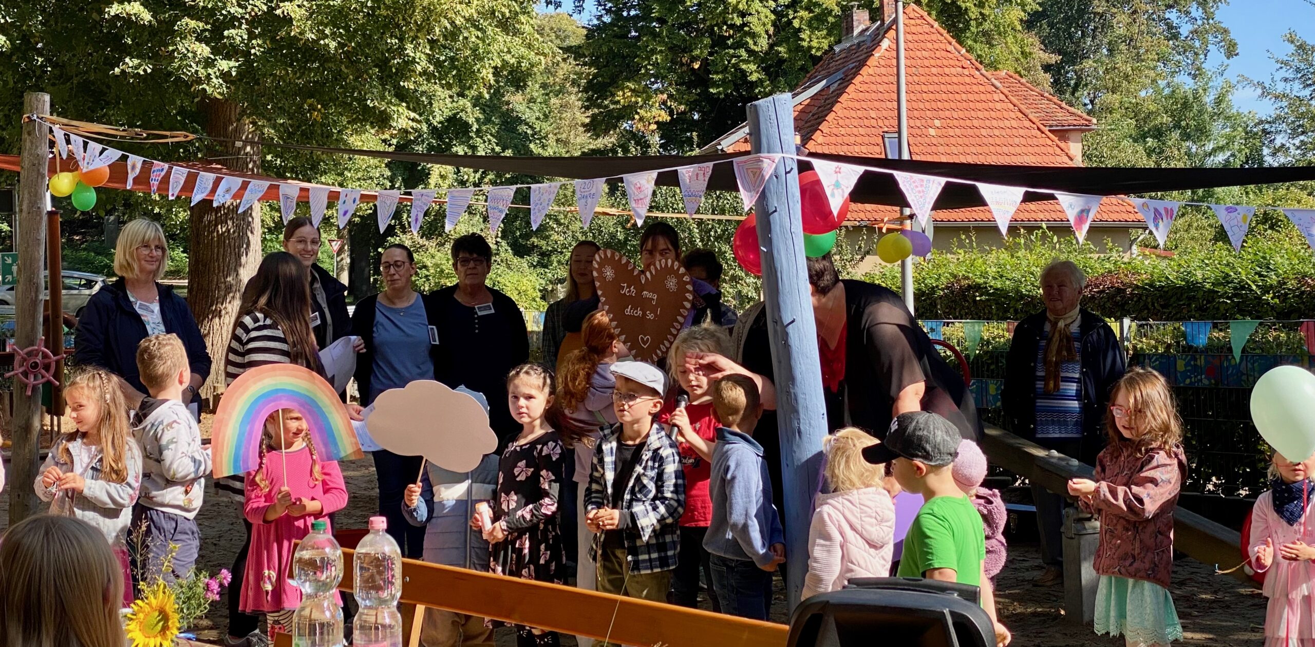Das Kinderfrisieren und -schminken sorgte für viele Verwandlungen und strahlende Gesichter. Bei einer Tombola gab es viele Überraschungen. „Unser wunderbares vielfältiges Buffet haben Eltern und Kita gemeinsam hergerichtet. Die große Auswahl an süßen und herzhaften Leckereien ließ keine Wünsche offen und trug mit zur festlichen Stimmung bei. Begegnungen auch mit ehemaligen Kindern und Mitarbeiterinnen sowie Wegbegleitern, Gespräche und gemeinsame Erinnerungen rundeten den Tag ab. Mit Dankbarkeit schauen wir auf die lebendigen 20 Jahre zurück und freuen uns darauf, was die kommenden Jahre bringen werden. Wir danken allen herzlich, die mit ihrem Engagement und die köstlichen Beiträge unser Kitafest zu einem unvergesslichen Erlebnis gemacht haben“, so Kita-Chefin Nancy Thoms.