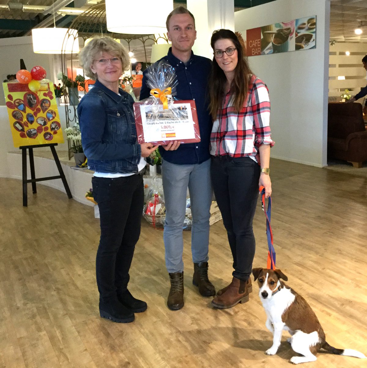 Das sind sie, die Hauptgewinner des großen Gewinnspiels zum 25. Geburtstag des Warener Möbelhauses Kallies: Familie Gall aus Penzlin hat die Küche im Wert von 5000 Euro gewonnen. Auch das vierbeinige Familienmitglied scheint sich gefreut zu haben.