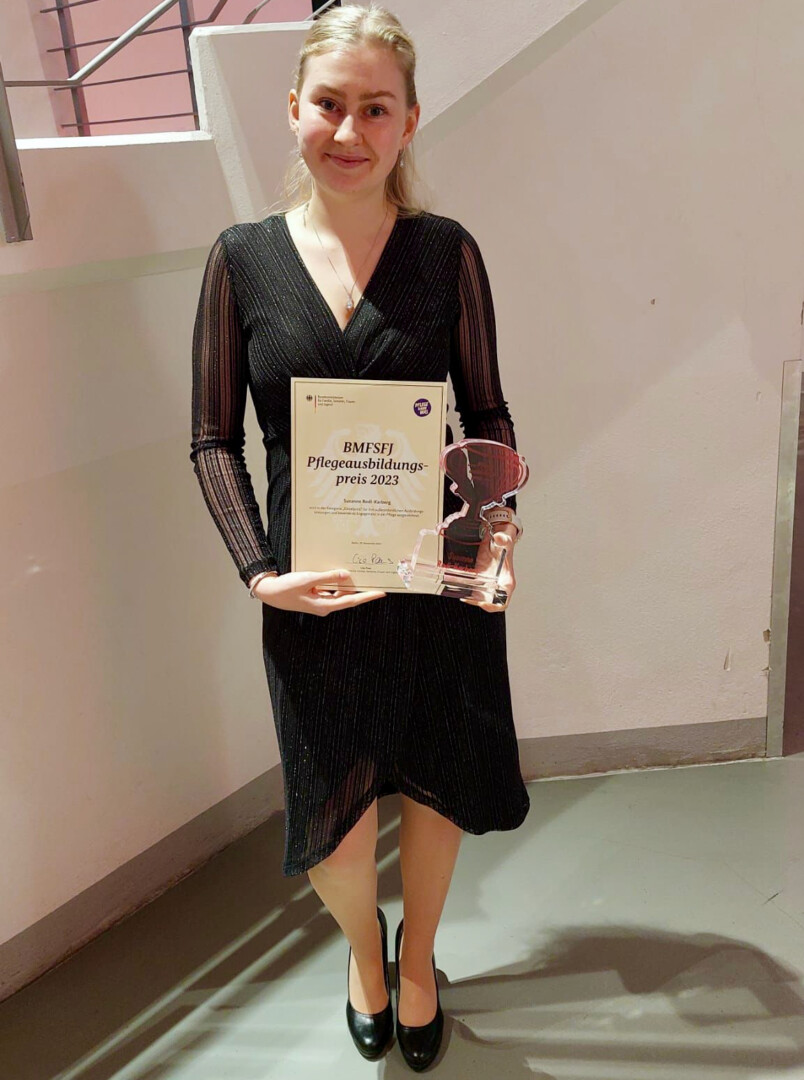 Für die Auszeichnung vorgeschlagen wurde die 22-Jährige vom RBB Müritz – Bewerbung, inklusive Video musste sie aber selbst erstellen. Mit einem Erfolg hat die junge Frau aber gar nicht gerechnet. „Ich war wirklich sehr überrascht, als ich die Mail vom Ministerium mit der Mitteilung der Auszeichnung bekommen habe“, gibt Susanne Rodi-Karberg zu. Und sie war richtig aufgeregt vor der Preisverleihung in dieser Woche. Die fand in Berlin statt, die Auszeichnung überreichte Bundesministerin Lisa Paus persönlich. Mit an Susannes Seite – ihre Mama. Beide genossen die Auszeichnungsveranstaltung und eine Nacht im Hotel. Zudem gab’s neben Urkunde und Pokal auch ein ipad und 1000 Euro.