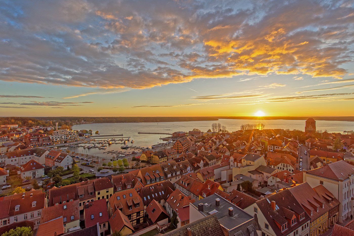 Aufgenommen heute Abend von Carsten Bremer, der auf den Turm der Warener Marienkirche geklettert ist.