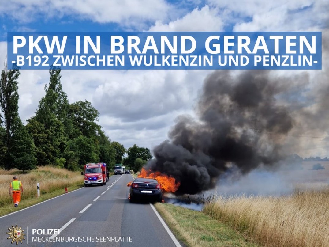 Pkw fängt auf der B 192 plötzlich Feuer