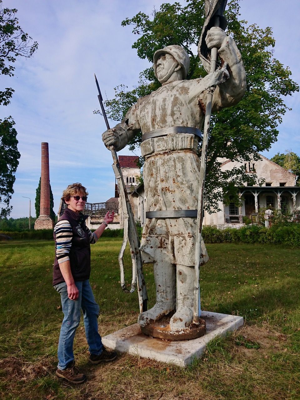 Nach 25 Jahren in einem Lager hat die Stadt die tonnenschwere Gussfigur dem Verein zum Erhalt der Domjuech als Dauerleihgabe überlassen. Dort am See waren in der DDR ja auch viele russische Soldaten stationiert. Dadurch, dass jetzt der riesige Unterbau von damals weggelassen wurde, wirkt der Rotarmist viel weniger bedrohlich, finden viele Besucher. Wie Vereinschefin Christel Lau sagt, heißt der Soldat Sergej.