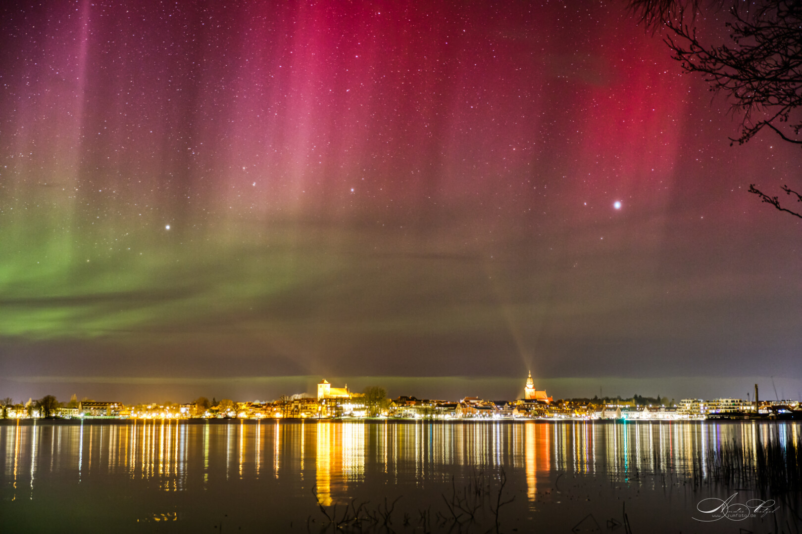 Genau das richtige Bild für einen Freitagabend: Der Warener Fotograf André Pretzel hat gestern Abend wieder Geduld bewiesen und kurz vor 23 Uhr dieses Bild mit Polarlichtern über Müritz und Stadt fotografiert.