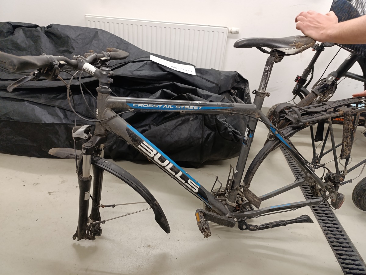 Diese Einzelteile eines Fahrrads konnten bisher keinem Besitzer zugeordnet werden. Am 1. November hatten Röbeler Polizisten auf Streife den Rahmen und die abmontierten Räder in der Nähe der Bushaltestelle Friedrichshof (Melz) bei Röbel gefunden. Die Kripo hat die offenen Diebstahlsanzeigen von Rädern geprüft und bisher keinen passenden Treffer finden können. Das Rad ist von der Marke Bulls, Modell Bulls Crosstail Street. Wer sein Rad nun wiedererkennt, meldet sich bitte im Polizeirevier Röbel unter 039931/8480, um die weiteren Schritte zu besprechen.