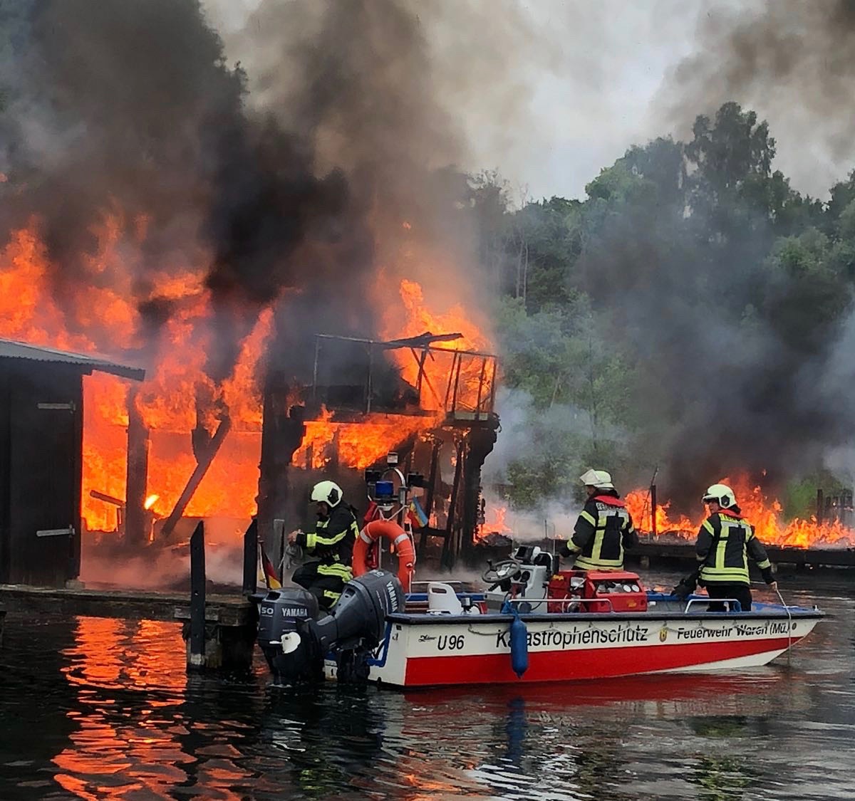 Das Feuer hat das Bootshaus, dass erst wenige Tage zuvor verkauft worden war, komplett zerstört, die Feuerwehrleute konnten aber ein Übergreifen auf weitere Bootsschuppen verhindern.