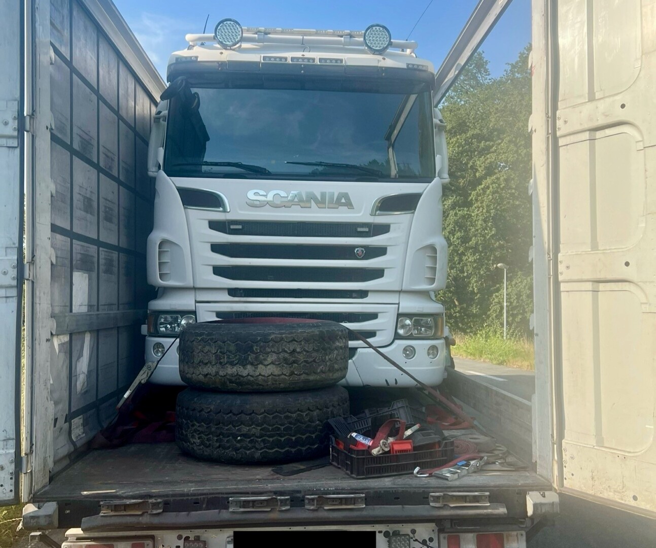Heute früh ist Beamten Autobahnpolizei Linstow im Rahmen der Streifenfahrt auf der A19 in Höhe Petersdorf ein Sattelzuggespann aufgefallen. Bei der Kontrolle des ungarischen Gespanns stellten sie auf der Ladefläche des Sattelaufliegers einen Muldenkipper fest. Dieser ragte in der Höhe über das Trailerdach hinaus. Auch die Ladungssicherung des Kippers war unzureichend. Zur Abwehr weiterer Gefahren wurden die Weiterfahrt untersagt und eine Sicherungskette angelegt. Sowohl gegen den 56-jährigen Fahrer als auch gegen die Spedition wurde ein Bußgeldverfahren eingeleitet.
