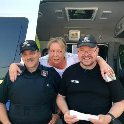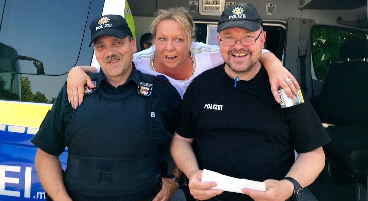 Das erleben die Polizisten auch nicht so häufig: Eine Busfahrerin, die gestern von ihnen kontrolliert wird, möchte ein Bild mit den Beamten. Das bekommt sie auch. Allerdings nicht nur das: Monika Schmitz muss auch ein Verwarngeld bezahlen. Denn ihr Fahrtenschreiber hat verraten, dass die taffe Frau aus Nordrhein-Westfalen vor Waren auf der Bundesstraße 192 mit 99 km/h unterwegs war. Doch Busse wie ihrer dürfen dort lediglich 80 km/h fahren. Aber auch die „Bestrafung“ trägt die Fahrerin mit Fassung. Denn ansonsten finden die netten Beamten bei ihr keine weiteren Verstöße.