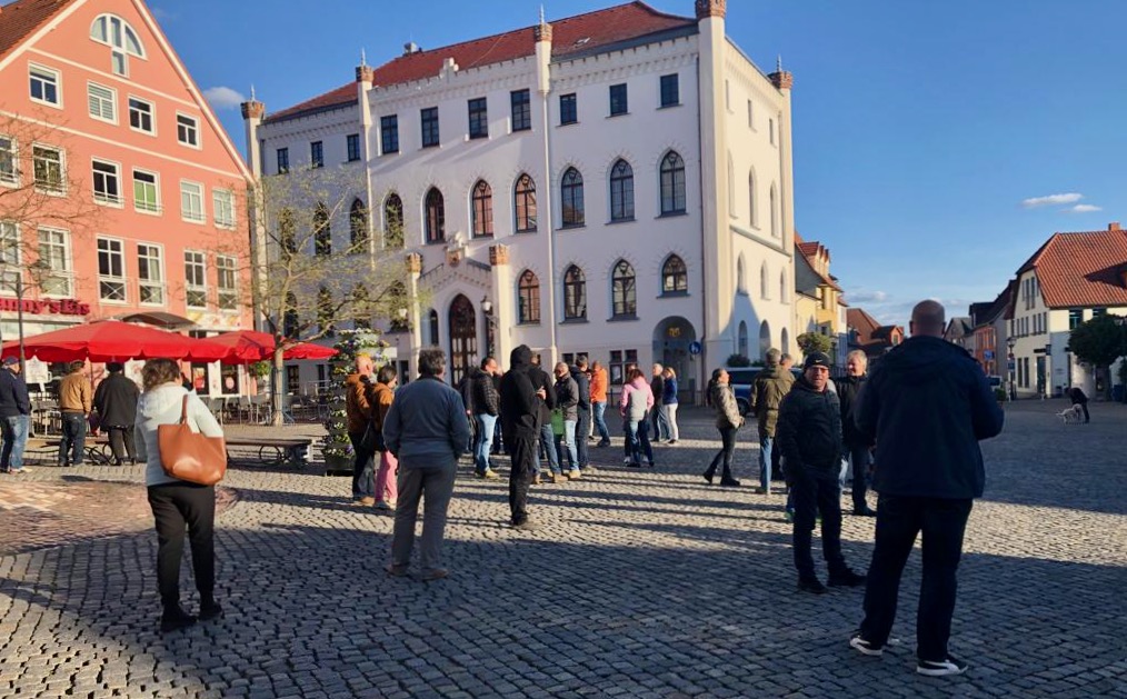 In Anlehnung an die Montagsdemonstrationen 1989 gibt es derzeit in vielen Städten sogenannte Demo-Spaziergänge durch die Stadt. Auch in Waren. Rund 60 Frauen und Männer „wanderten“ heute Abend durch die Innenstadt – still und friedlich, aber nach ersten Informationen wohl ohne vorherige Anmeldung.