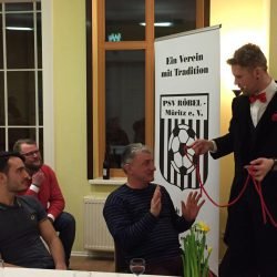 Rund 40 Gäste aus Wirtschaft und Politik folgten gestern Abend der Einladung des PSV Röbel zum „Sponsorenabend“ und hatten viel Spaß und Freude im Haus des Gastes. In diesem Jahr begeisterte „The great Pautzinger“ aus Greifswald mit einer besonderen Zaubershow die Unterstützer des Röbeler Fußballvereins.