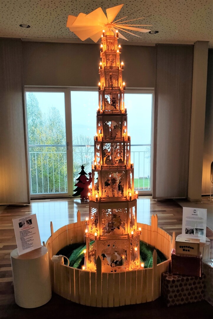 Weihnachten ist schon ein bisschen her, aber die „Warener Tafel profitiert immer noch von der besinnlichen Zeit. Im Dezember hatte das Hotel TUI BLUE Fleesensee die weltgrößte Grimms-Märchen-Pyramide ausgestellt (WsM berichtete) und dies wieder zum Anlass genommen, unter den anwesenden Gästen zu einer Spendenaktion aufzurufen. Die Pyramide wurde als Laubsägearbeit per Hand von Regine und Lothar Blache aus Wittenberge angefertigt, die ihren Ruhestand ganz ihrem Hobby verschrieben haben und mit handwerklichem Geschick und Kreativität traditionelle Formen modern interpretieren. Und so kamen 250 Euro von Menschen zusammen, die sich von dieser Pyramide fasziniert zeigten. Geld, das jetzt der Warener Tafel zugute kommt.