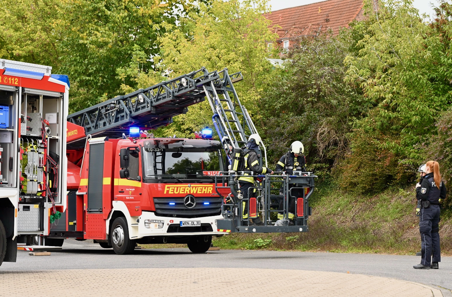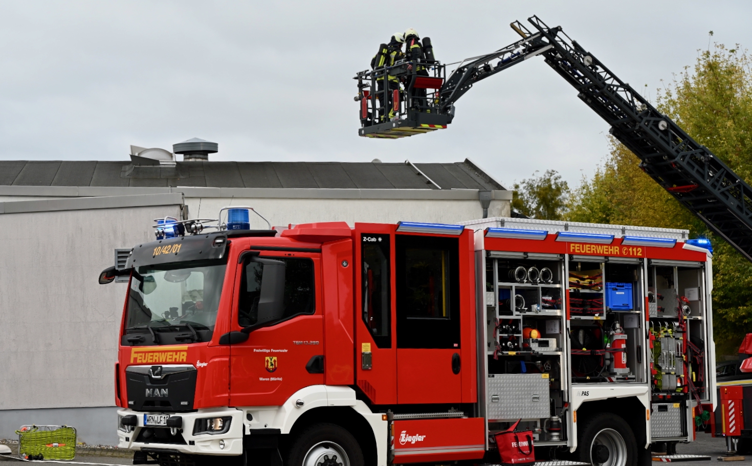 Großer Schreck heute Mittag in Waren-West: Zeugen beobachteten Qualm, der aus dem Dach des EDEKA-Marktes in der Bonhoeffer-Straße aufstieg. Umgehend eilten mehrere Fahrzeuge der Warener Feuerwehr zum Ort des Geschehens. Aus den beiden nebeneinanderl iegenden Einkaufsmärkten sowie aus allen weiteren Geschäften des Komplexes wurden alle Menschen vorsorglich evakuiert. Offene Flammen gab es nicht.