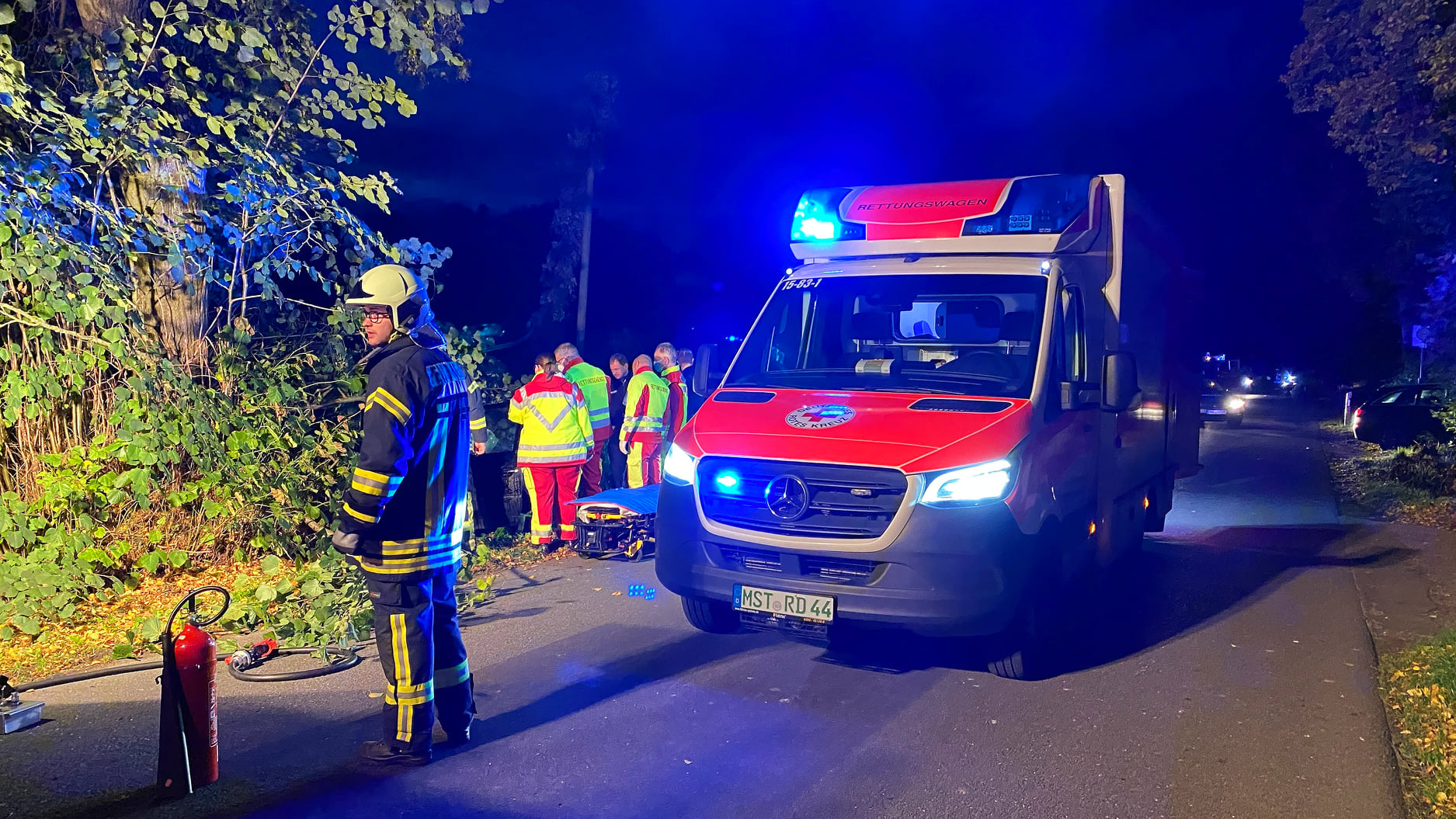 Die Kameraden sicherten das Fahrzeug und klemmten die Batterie ab. Die Frau wurde mit schweren aber nicht lebensbedrohlichen Verletzungen in ein Krankenhaus gebracht. An dem Unfallfahrzeug entstand ein Schaden von rund 2000 Euro. Die Polizei hat die Ermittlungen zur genauen Unfallursache aufgenommen. Die Kreisstraße 3 musste für die Dauer der Rettungs- und Bergungsarbeiten voll gesperrt werden.