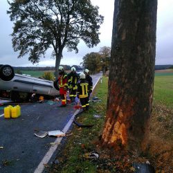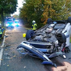 Durch die Wucht des Aufpralles wurde das Fahrzeug in Richtung Fahrbahn hochgeschleudert, drehte sich und kam auf dem Dach zum Liegen. Dem 58-jährigen Fahrer gelang es, sich selbstständig aus dem Fahrzeug zu befreien. Er zog sich bei dem Unfall aber so starke Verletzungen zu, dass er mit einem Rettungswagen ins Krankenhaus gebracht werden musste.