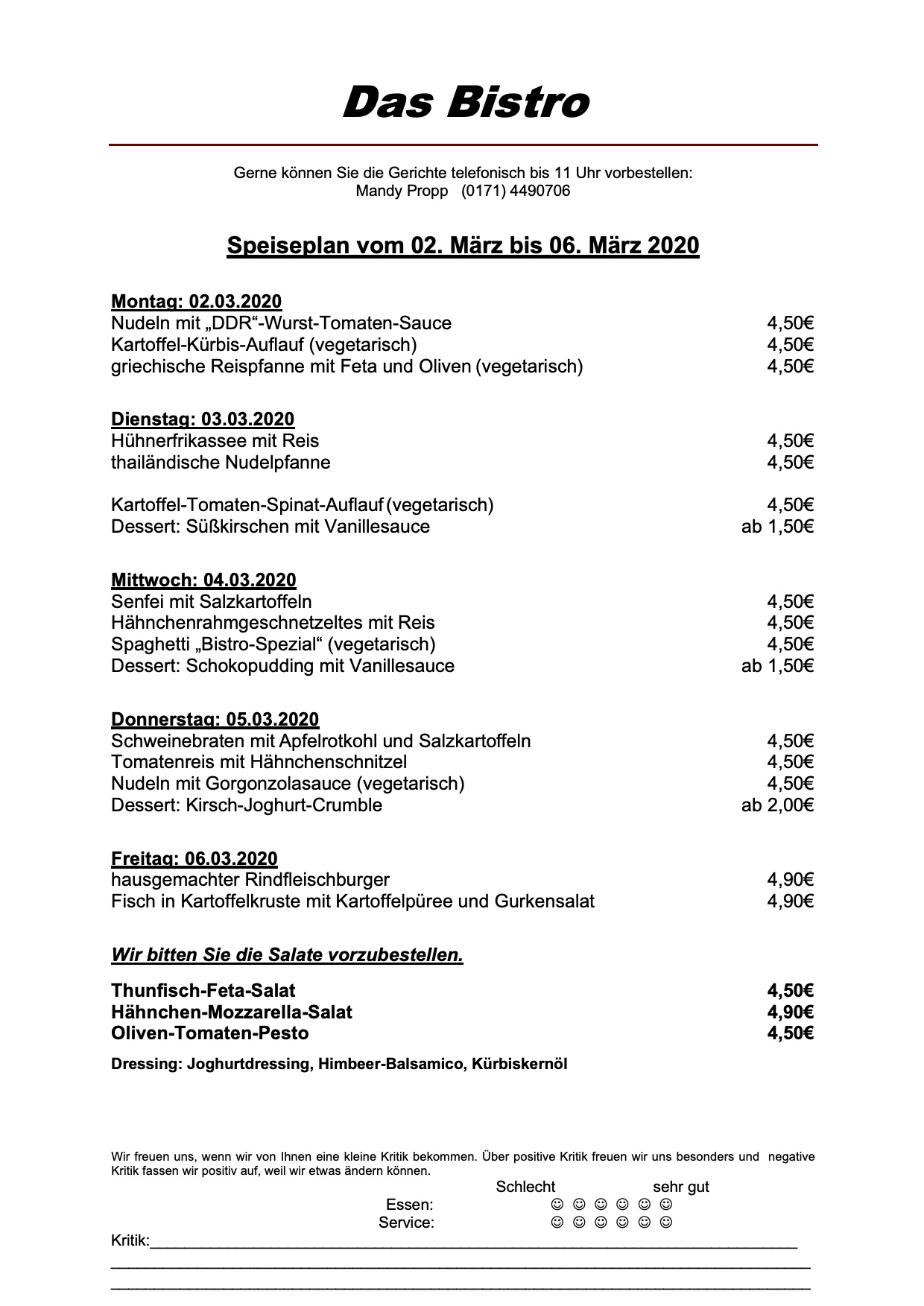 Hier der Speiseplan für diese Woche: