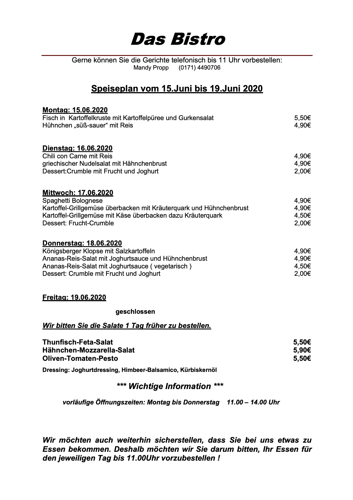 Die Woche beginnt in „Das Bistro“ am Warener Amtsbrink mit Fisch in Kartoffelkruste sowie Hühnchen „süß-sauer“.