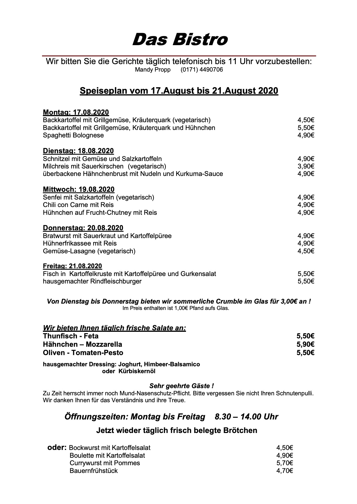 Hier der komplette Speiseplan für diese Woche: