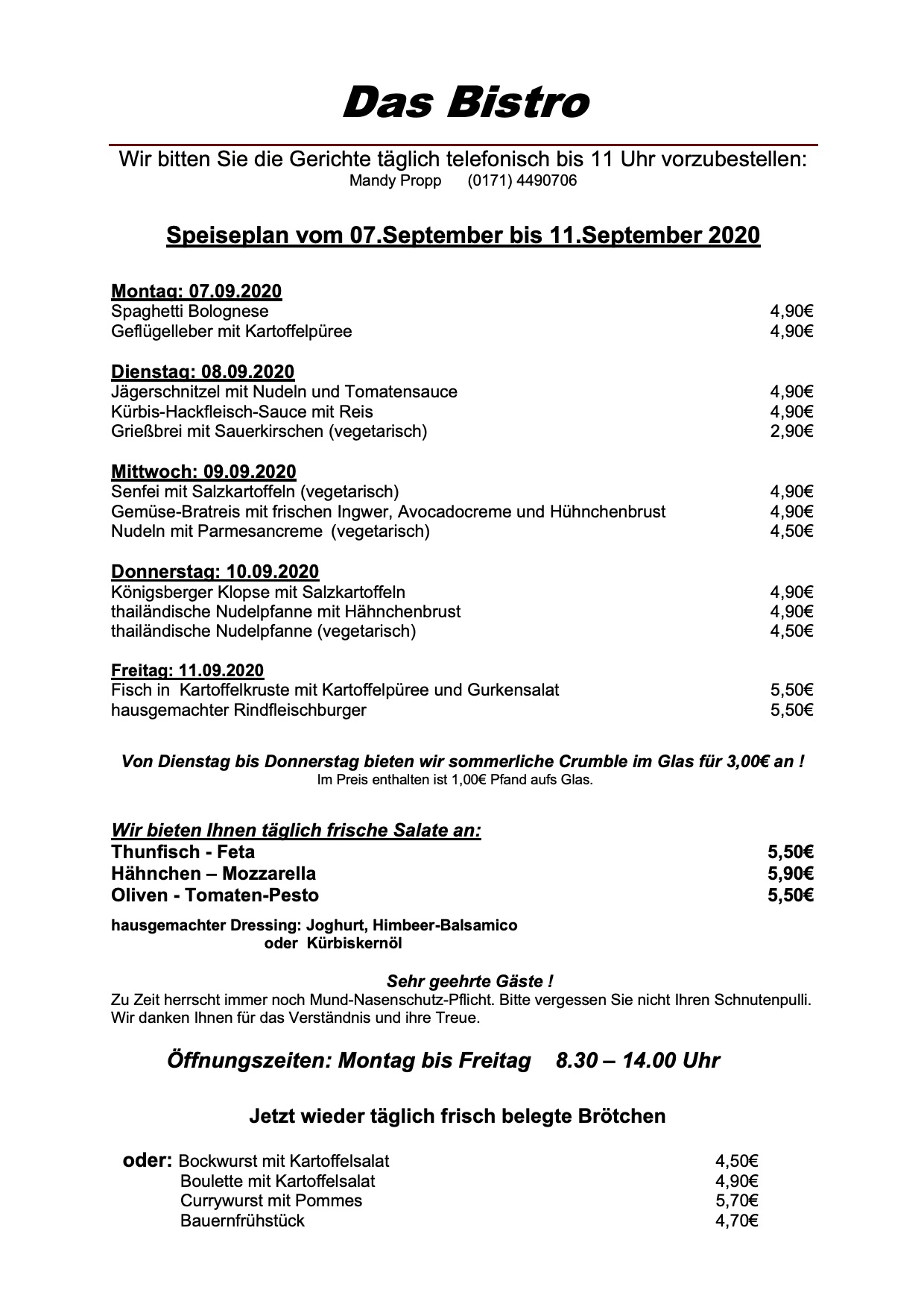 Hier der Speiseplan für diese Woche: