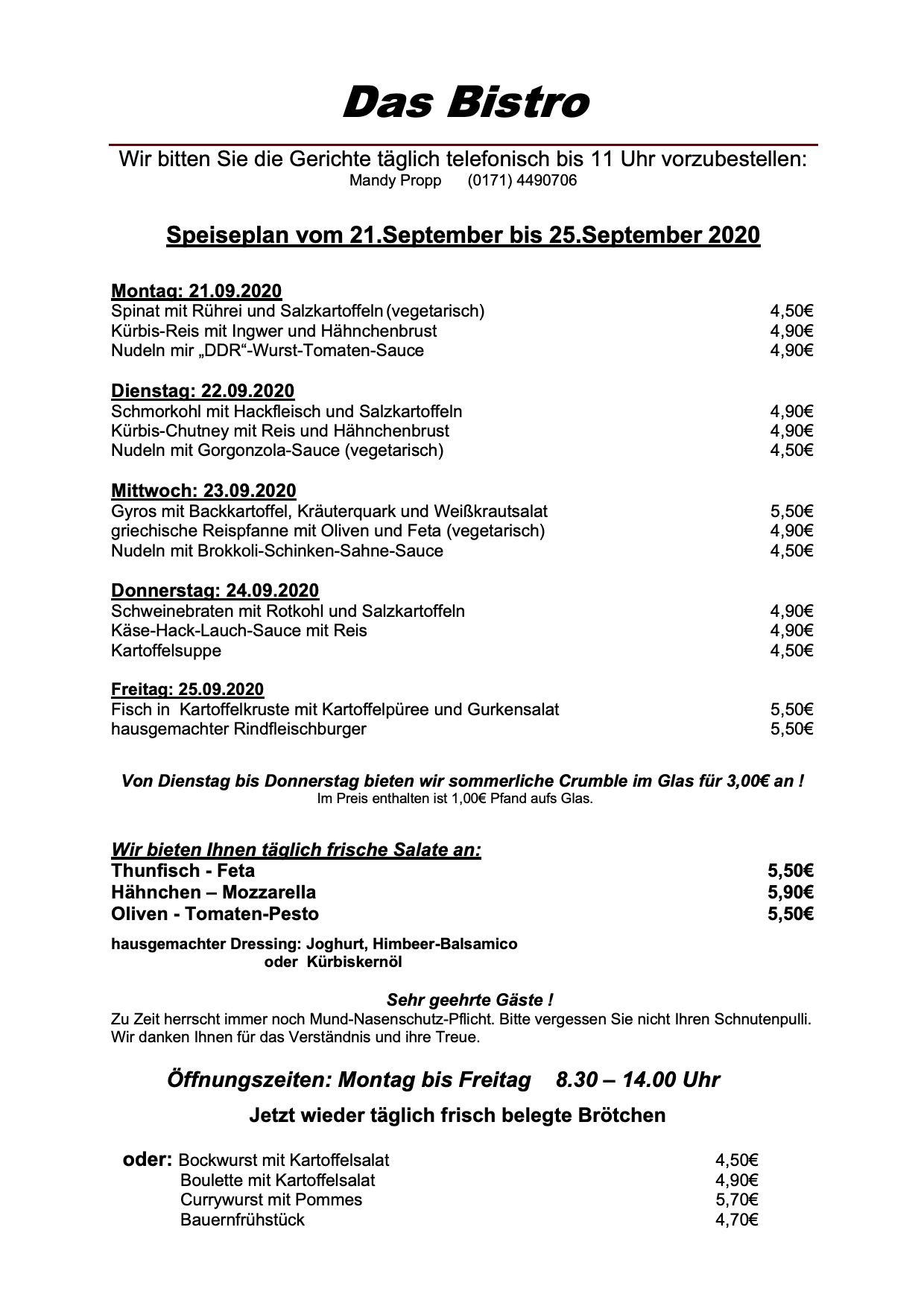 Hier der Speiseplan für diese Woche: