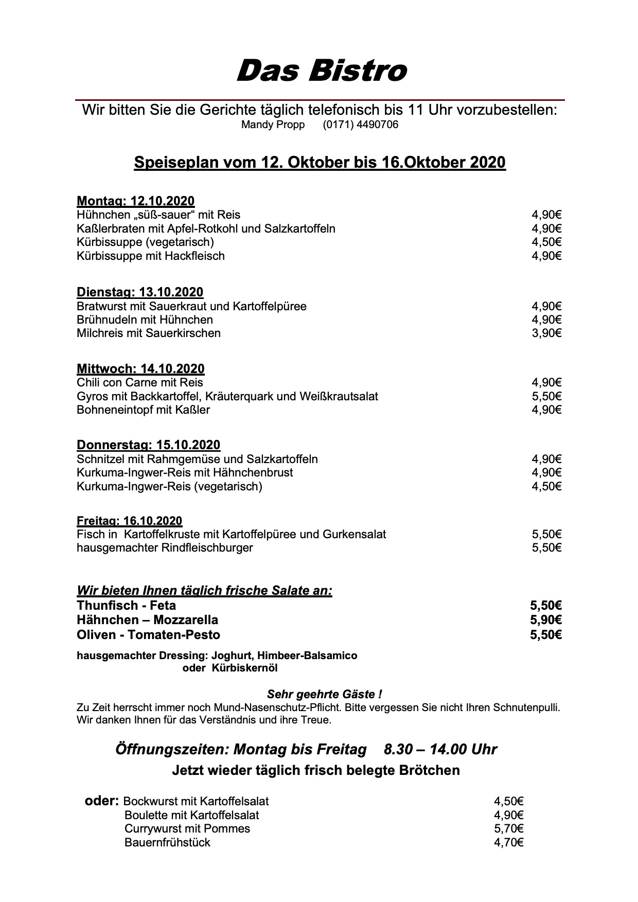 Los geht die Woche nach den Ferien im „Das Bistro“ am Warener Amtsbrink mit Hühnchen süß-sauer, Kaßlerbraten und Kürbissuppe.