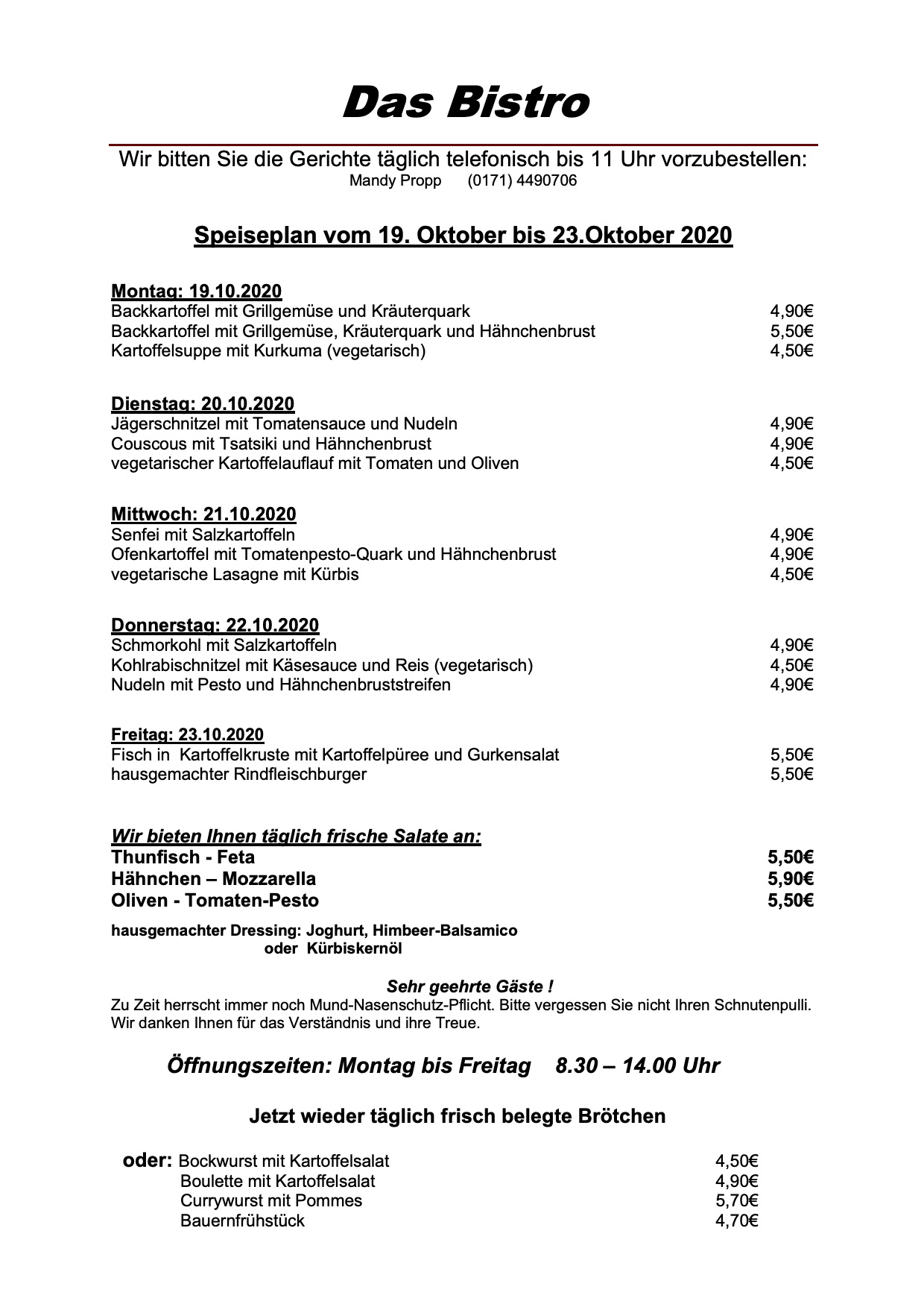 Und hier der komplette Speiseplan für „Das Bistro“ am Warener Amtsbrink: