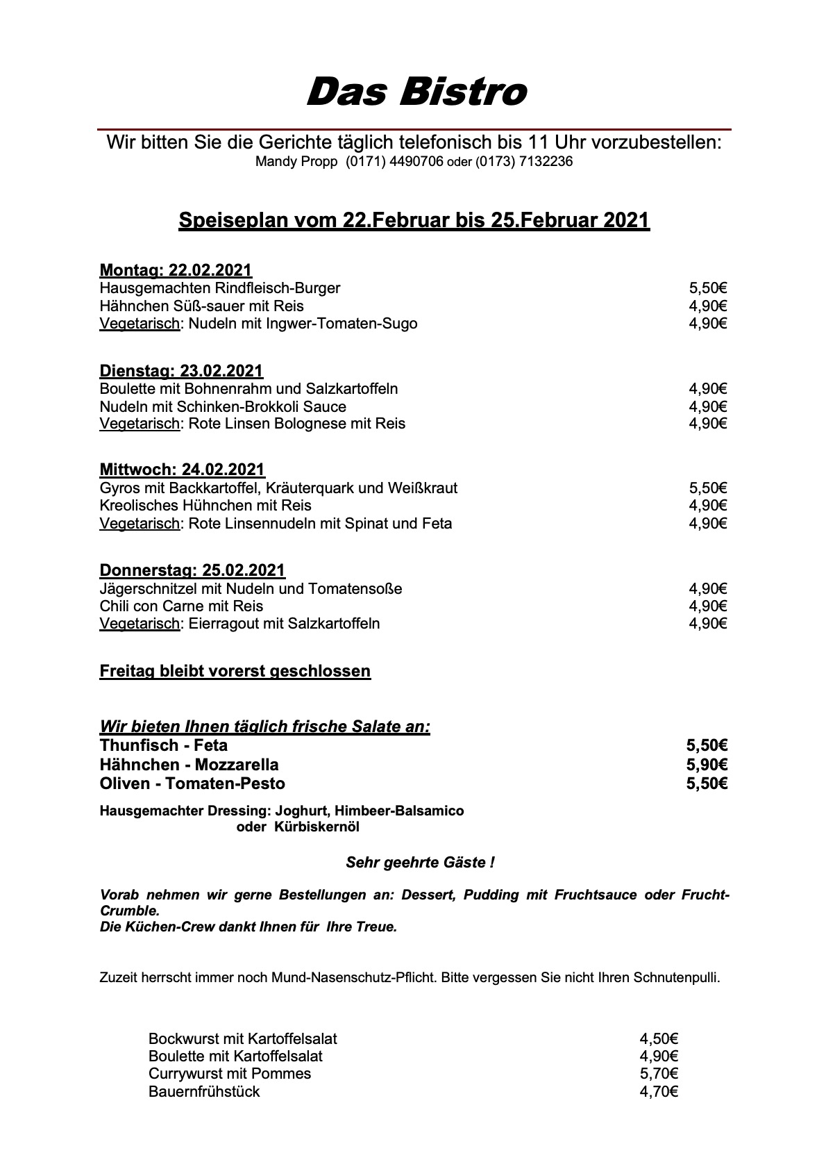Hier der komplette Speiseplan für diese Woche: