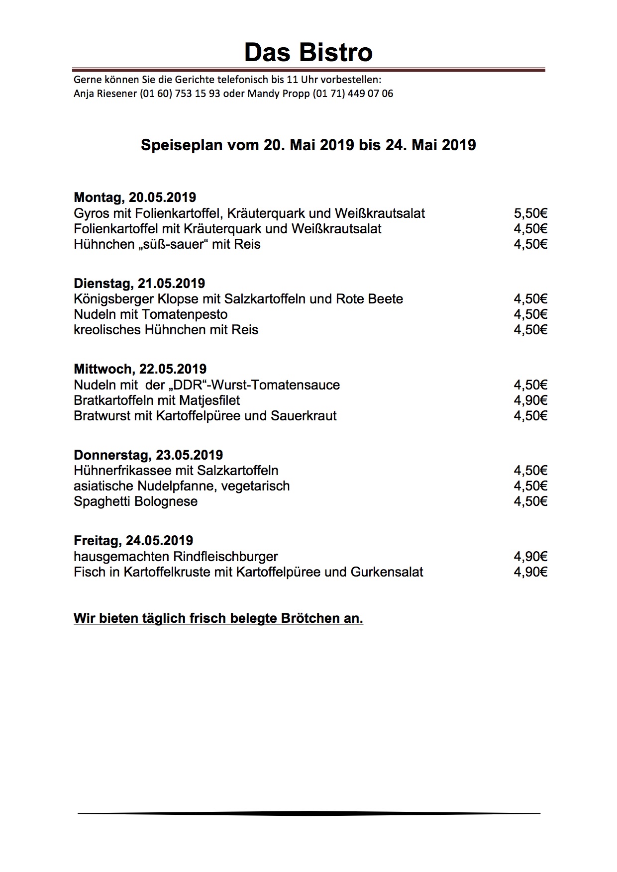 Und das gibt’s in dieser Woche in „Das Bistro“ am Warener Amtsbrink: