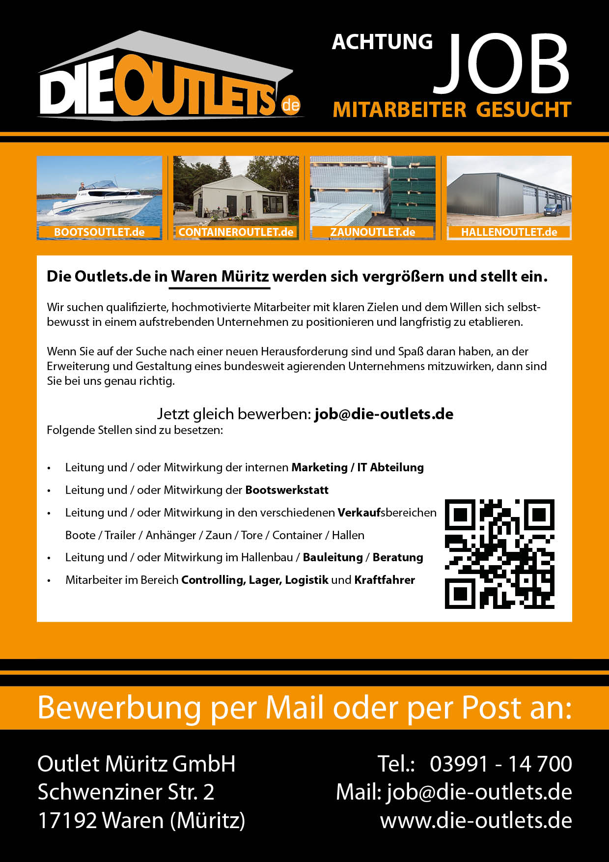 Die Outlet Müritz GmbH ist nun auf der Suche nach aufstrebenden, motivierten Mitarbeitern, um die Umsätze und natürlich auch die Qualität des Unternehmens weiterhin zu verbessern.
