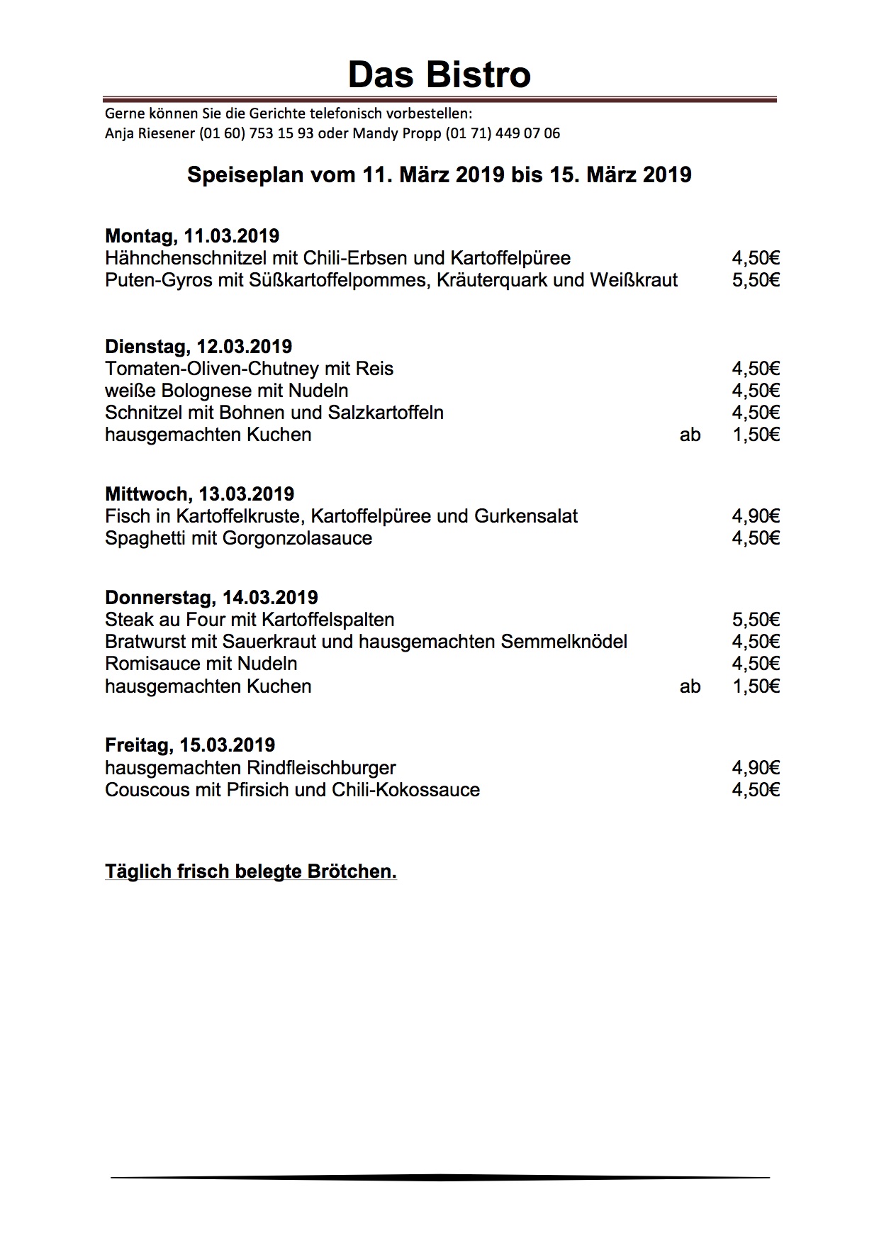 Und das gibt’s in dieser Woche im Bistro am Warener Amtsbrink (ehemals Sylvis Bistro):