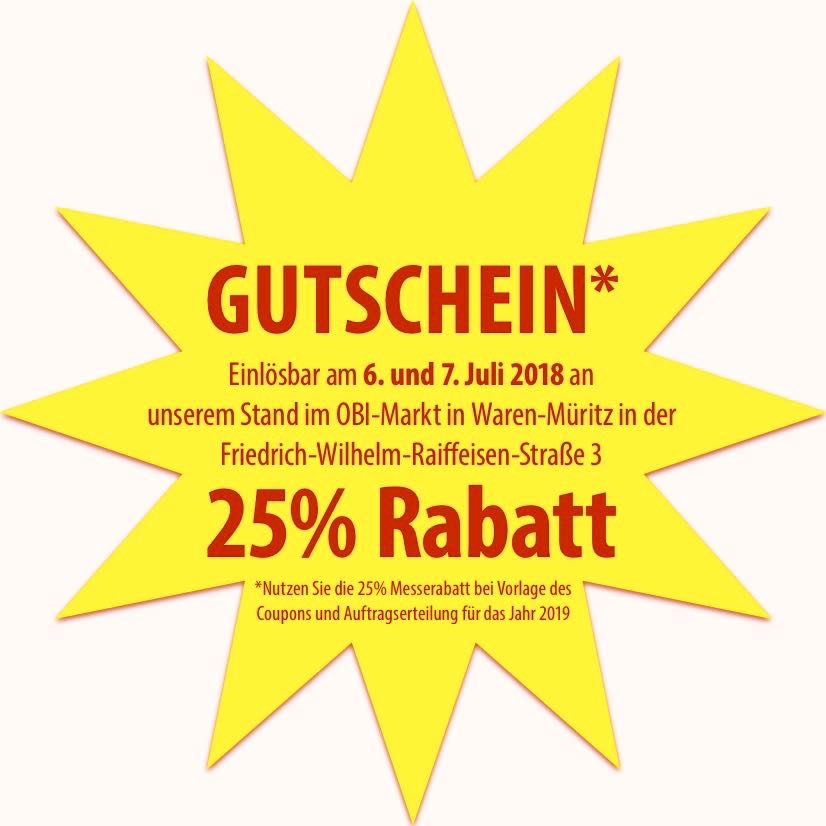 Die D & F-Profis sind in ganz Mecklenburg-Vorpommern, Brandenburg, Sachsen und Sachsen-Anhalt tätig. Über 2.500 Referenz-Objekte sind das Aushängeschild des Unternehmens. Hausbesitzer, die sich mit dem Gedanken tragen, im kommenden Jahr das Dach oder die Fassade ihres Hauses zu sanieren, sollten unbedingt die Chance nutzen und am 6. und 7. Juli mit den Fachleuten im OBI-Markt in Waren-Müritz ins Gespräch zu kommen. In der Zeit von 9 bis 17 Uhr können sich Interessierte beraten lassen und einen Termin vor Ort für die Erstellung eines Angebotes vereinbaren. Lassen Sie sich den Messerabatt nicht entgehen!