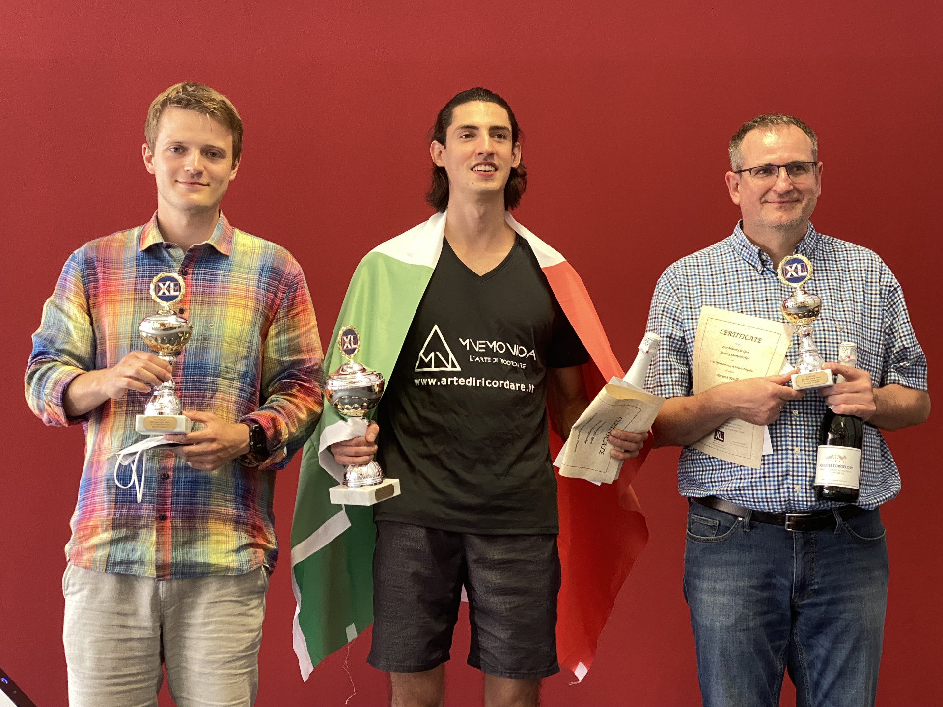 Bei der parallel stattfindenden MemoryXL Open konnte der Italiener Andrea Muzii (21) mit sehr beeindruckenden Leistungen glänzen. Unter anderem verbesserte er seinen eigenen Weltrekord in der Disziplin „Speed Numbers“ und memorierte in fünf Minuten eine 630-stellige Zahl (!). Mit einer Gesamtpunktzahl von 8.594 Punkten schiebt er sich damit an Position 1 der Weltrangliste.