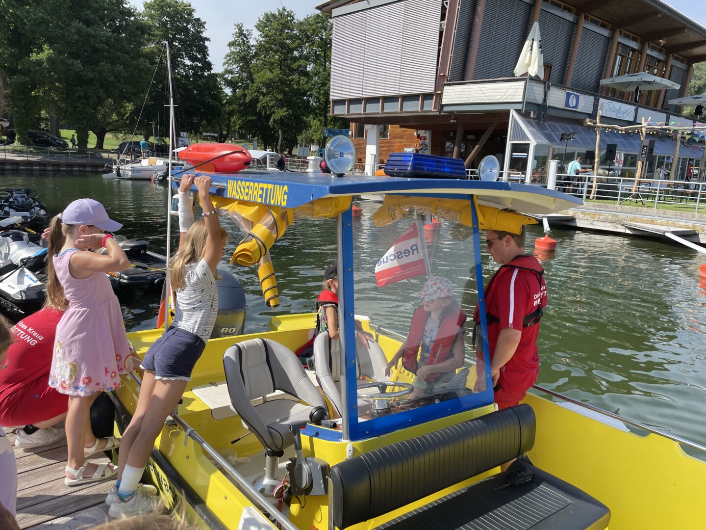 So viel Blaulicht in dieser Woche an der Müritz-Klinik in Klink – aber die Einsatzwagen sorgten nicht für angstvolle Blicke, sondern strahlende Kinderaugen: Die Klinik hat zusammen mit der Polizei, der Wasserschutzpolizei, dem Technischen Hilfswerk, der Wasserwacht, dem DRK sowie den Feuerwehren aus Waren und Klink einen Blaulicht-Tag organisiert. Und der hielt ganz viele tolle Erlebnisse für die Mädchen und Jungen bereit. Die Kinder haben zumeist schon lange Klink-Aufenthalte und Operationen hinter sich und erholen sich jetzt einige Wochen in der Müritz-Klinik.