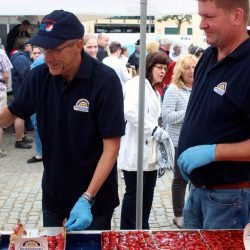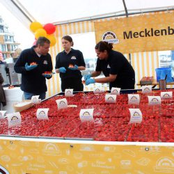 Voller Erfolg: Der Riesen-Kuchen der Mecklenburger Backstuben GmbH ist heute restlos weggegangen. Das waren rund 1000 Stück. „Es hat wirklich ganz viel Spaß gemacht. Wir hatten nette Gespräche mit den Besuchern und freuen uns, dass ganz viel Geld für den Waldorfkindergarten und die Penne-Schule zusammengekommen ist“, so Günther Neumann, Geschäftsführer der Mecklenburger Backstuben GmbH, gegenüber „Wir sind Müritzer“.