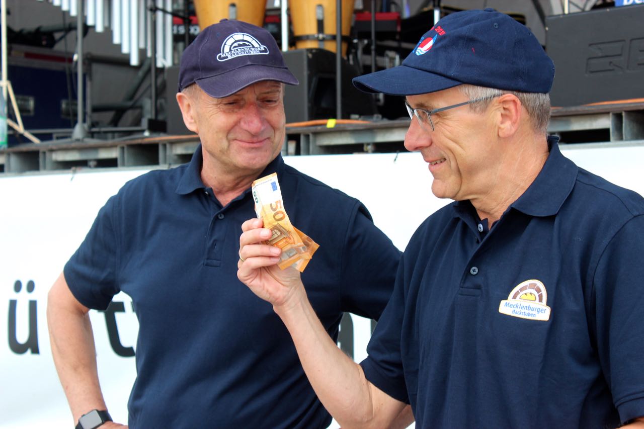 Wieviel Geld, wird allerdings noch nicht verraten. Von Warens Bürgermeister Norbert Möller kamen noch einmal 100 Euro extra, weil er gestern beim Stand-up-Paddeln in die Müritz geplumbst ist.