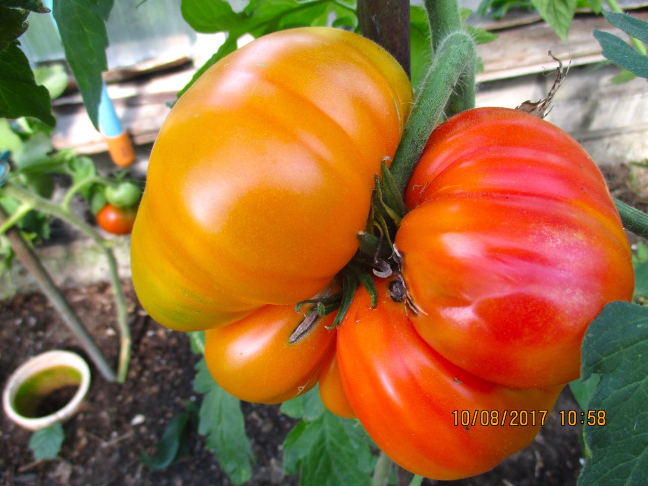 Die dürfte für einen großen Salat gereicht haben. Im Gewächshaus von Gerhard Schulz und Frau aus Waren ist diese Riesen-Ananas-Tomate gewachsen.