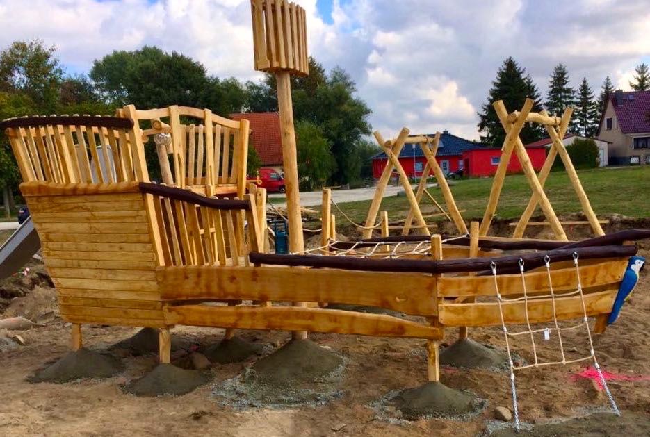 Der neue Rockower Lieblingsplatz der Kleinen hat ebenfalls rund 30 000 Euro gekostet, ist sogar etwa 3000 Euro günstiger geworden als geplant und bietet den großen und kleinen Eroberern unter anderem ein Abenteuerschiff, zwei Schaukeln, ein Turnreck, zwei Fußballtore, eine Seilbahn, einen Sandkasten und, und, und. Das Ganze aus dem Holz Robinie.