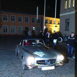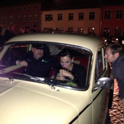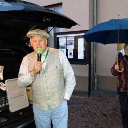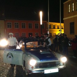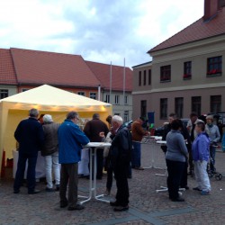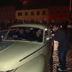 Als bestens organisiert beschreiben die vielen Röbeler, die im Regen ausharrten, die Rallye und lobten den Moderator, der ihnen präzise erklärte, wer da gerade mit was für einem Gefährt über den Markt rollt. Von der rührigen Tourist-Info Röbel wurden die Fahrer und Beifahrer mit einem netten Brief sowie Info-Material bedacht, schließlich sollen die Teilnehmer das schnucklige Müritzstädtchen ja auch mal im Hellen und bei bestem Sonnen-Wetter erkunden. Als hervorragend und lecker bezeichneten die Gäste auch das Catering der Müritz-Terrasse, die mit kleinen Leckereien verwöhnte.
