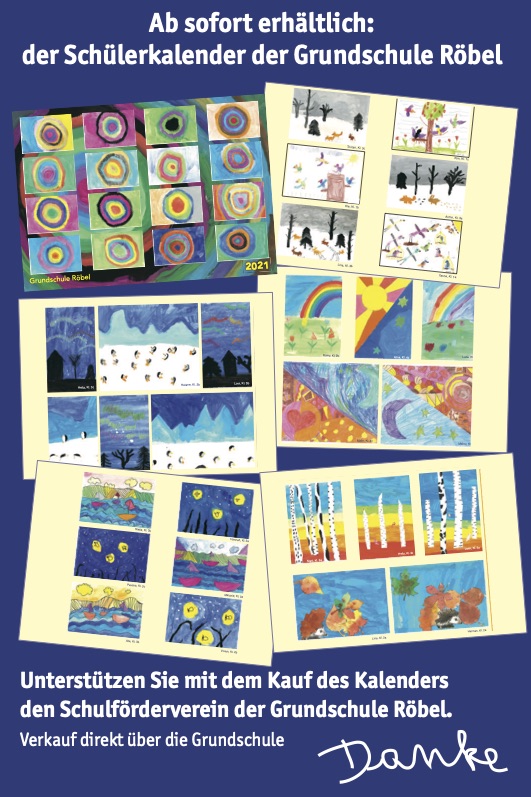 Auch in diesem Jahr gibt es ihn wieder, den Kalender der Grundschule Röbel. Die einzelnen Kalenderblätter enthalten Arbeiten der Mädchen und Jungen. Der Kalender kostet wie in den Vorjahren 5 Euro, der Erlös geht an den Schulförderverein, und der möchte dieses Mal die Schulhofsanierung mit dem Geld unterstützen.