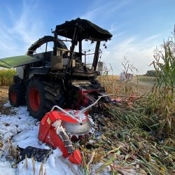 „Ich konnte nichts mehr tun. Der Häcksler stand innerhalb weniger Minuten komplett in Flammen“, sagte uns Thorsten Revens. Am Häcksler entstand ein Gesamtschaden von mindestens 40.000 Euro.
