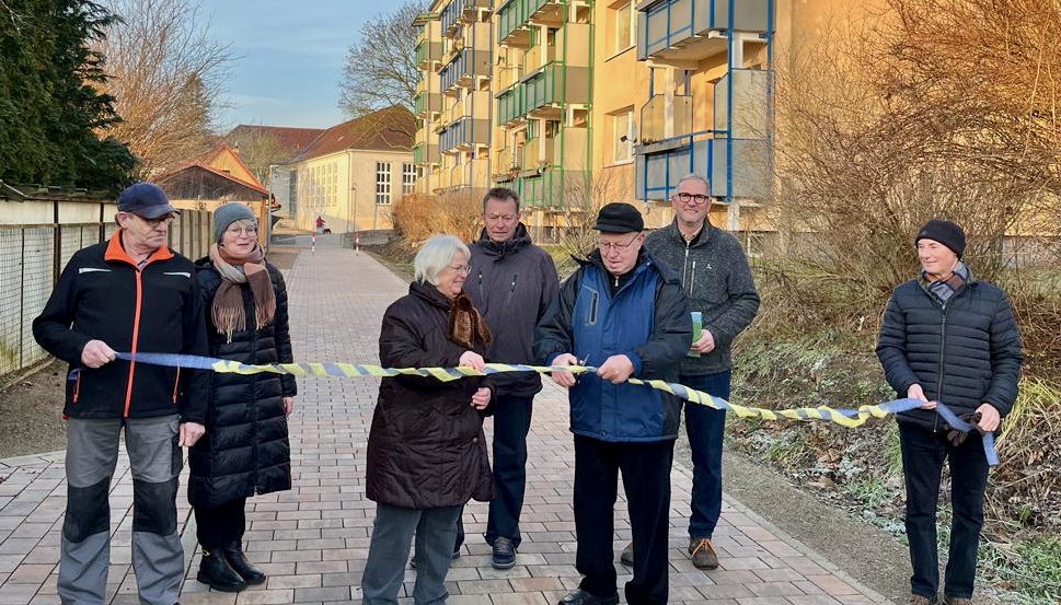 Der neu gepflasterte Hauptweg war bereits Ende 2021 fertiggestellt. Die Gesamtmaßnahme bis zur Grundschule und zur Treppe an der Wallpromenade konnten aber erst jetzt abgeschlossen werden, da dieser Bereich bis dato als Baustellenzufahrt für die Komplexsanierung des Begegnungs- und Grundschulzentrum diente.