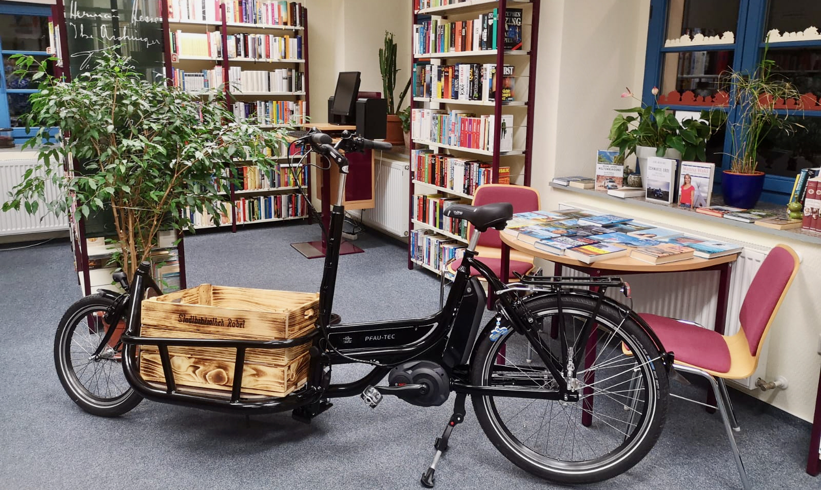 Die Röbeler Bibliothek bietet ab sofort einen kontaktfreien Lieferservice für Medien an und ist dabei richtig cool unterwegs – mit einem auffälligen E-Bike. „Wir vereinbaren gerne einen Termin mit unseren Lesern und fahren mit unserem neuen E-Bike direkt vor die Haustür“, so Eva-Maria Bening von der Bibliothek.