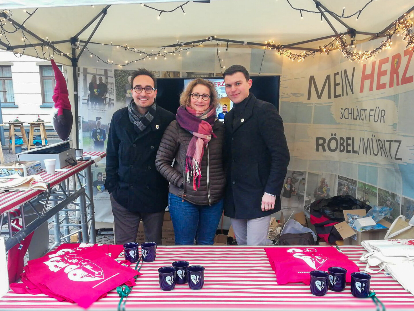 Viele Menschen folgten der Einladung zum „Röbeler Weihnachtsleuchten“ und nutzten die Chance, auf dem Marktplatz den „Mein Herz schlägt für Röbel/ Müritz-Stand“ zu besuchen. Neben einem großen Anlauf von bekannten und neuen Gesichtern sowie erwärmenden Gesprächen, fand die diesjährige Auflage des Kulturbeutels sehr guten Anklang, und die tollen Herzmotiv-Tassen gingen zahlreich über den Standtisch. Die Röbeler bewiesen einmal mehr, dass ihre Herzen für die „gebeutelte“ Kultur schlagen.Die Erlöse unterstützen ausnahmslos die künftigen Kulturprojekte in unserer bunten Stadt am kleinen Meer, die unsere Herzen auch in 2023 wieder höher schlagen lassen werden.