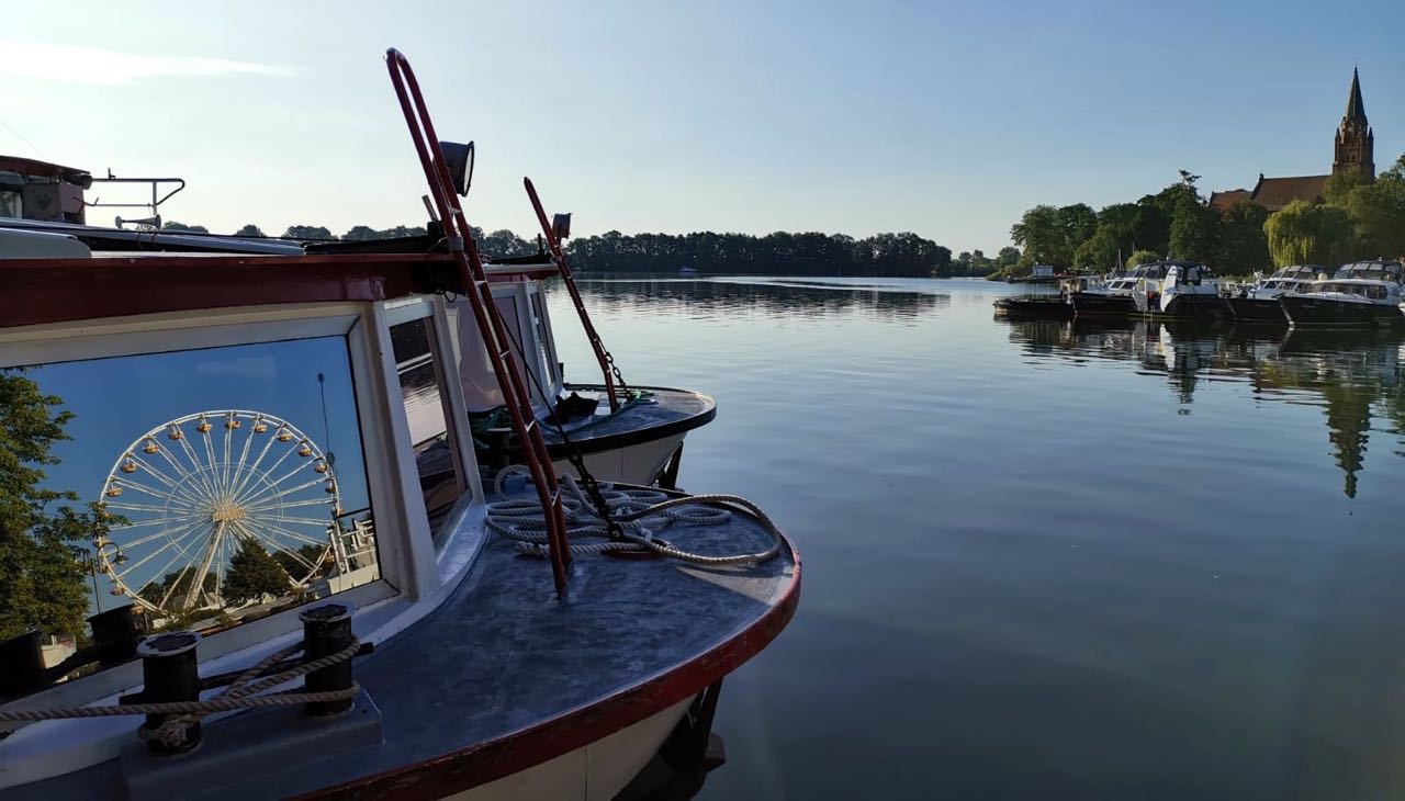 Am Wochenende steigt das Seefest in Röbel. Ute Hager hat das Riesenrad heute früh einmal aus einem anderen Blickwinkel fotografiert.