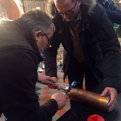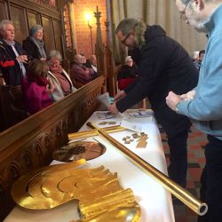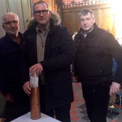 Das markante Gotteshaus wird seit etwa einem halben Jahr umfassend saniert, vor allem das Dach und die Fassade hatten es bitter nötig. In diesem Zusammenhang wurde auch die Kirchturmkugel erneuert und gestern für die Nachwelt „befüllt“.