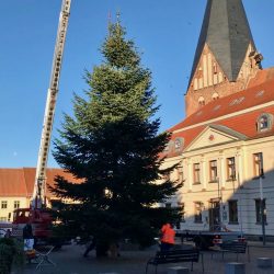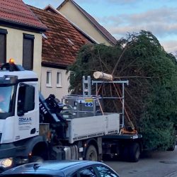 Heute früh wurde das Prachtexemplar von Familie Beer aus Marienfelde durch die engen Straße zum Markt gefahren.